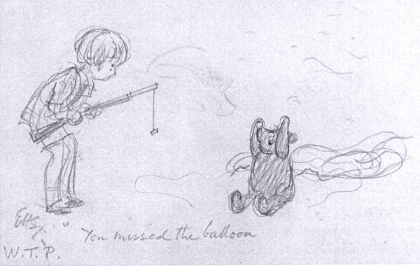 כדי להדגים כמה חופש היה בסקיצות של שפארד הנה רישום שבוא הוא צייר את גרהם בנו. הרישום הזה מקדים את האיורים של פו הדוב בערך ב-15 שנה: