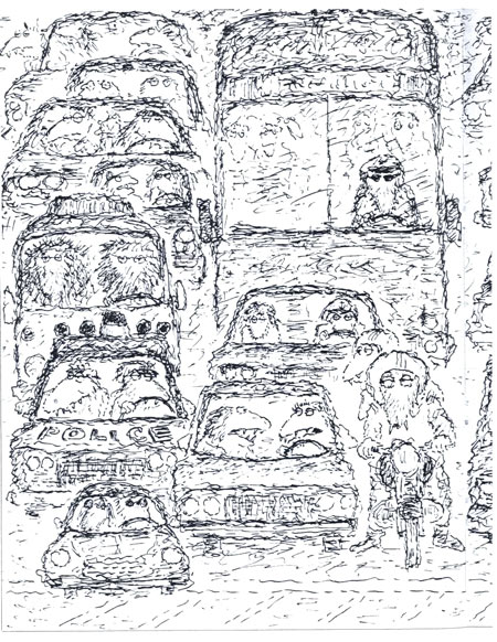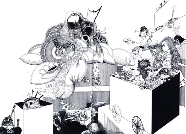 אבל בני הגיל שלי מכירים את משחק הקווים שנוכח מאוד באיורים של ראלף סטדמן. כאן אני מביא דוגמאות מהאיורים שלו לאליס בארץ הפלאות. סטדמן אוהב מאוד את המשחק בין הקווים הפראיים לקווים שנעשו בסרגל או במחוגה: