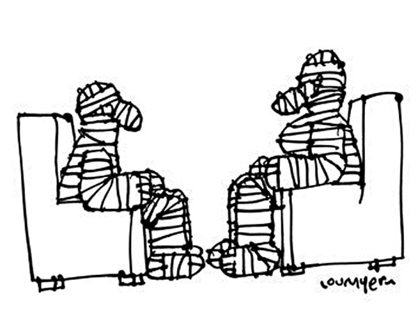 הפעם בחרתי בשני קריקטוריסטים, שכל אחד מהם ניכר מייד גם לעין פחות מקצועית בגלל, או בזכות, הקו הטיפוסי שלו והדרך שבה הקו הזה משרת את הנושא.