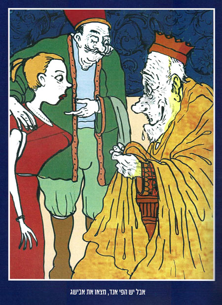 היא הלינה על כך שהעיניים של אבישג השונמית פעורות והשדיים ענקיים. אז אני מבין מזה שעם עיניים עצומות ושדיים קטנים לא הייתה אווירת חרמנות בטקסט התנכ"י? פרט להערה הזאת לא הייתה לה מילה על האיורים. קצת מוזר כשמדובר במבקרת ספרי ילדים. בכל זאת, מבקרי ספרי ילדים נוהגים להתייחס לסגנון האיורים ולא רק לגודל השדיים באיור ספציפי.