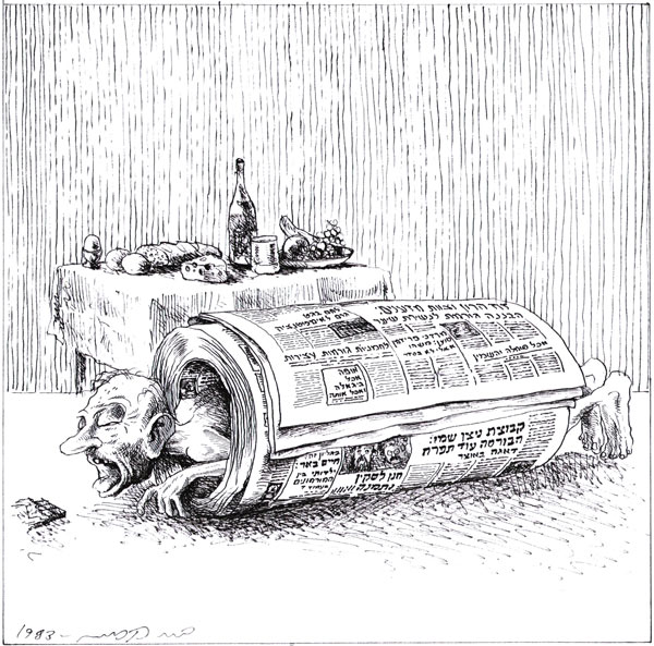 האיור הזה הופיע בשער של ספר השנה של העיתונאים, 1983: