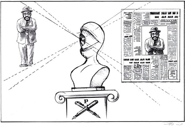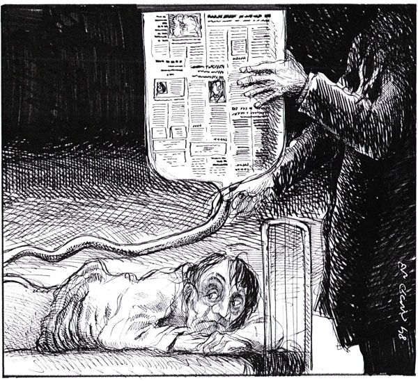 במשך שנים רבות, בעיקר בין השנים 2004-1968, הייתי קשור מבחינה מקצועית לעיתונות המודפסת, זאת שהיום הולכת ונכחדת. וכאן יש לי הזדמנות להביא כמה איורים בנושא עיתונות מודפסת.