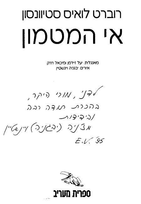 אני אוהב מאוד גם את הסיפור הנפלא הביתן על הדשא שתורגם לעברית רק פעם אחת, וכמובן אוהב כמו כולם גם את דוקטור ג'קיל ומיסטר הייד.