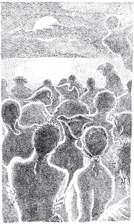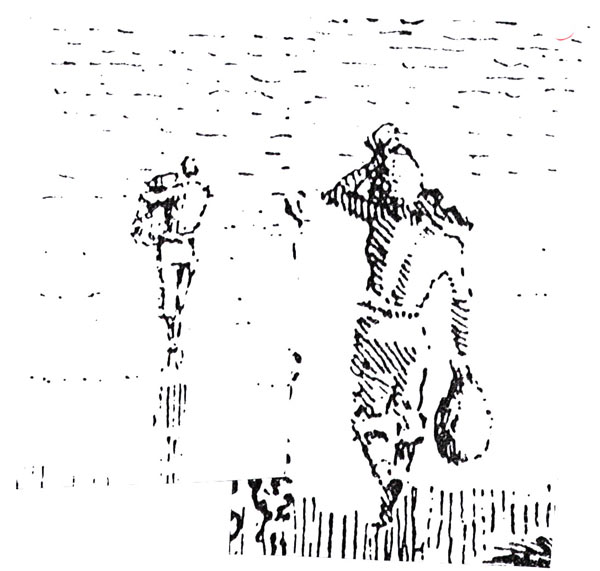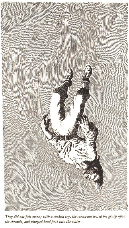 האיורים של פיק, בעיקר בספר הזה, מאופיינים בקווקוו מיוחד, שגם אם הוא בא רק לתאר רקע, הוא משתתף פעיל באיור, כמו האיור הזה של ג'ון סילבר: