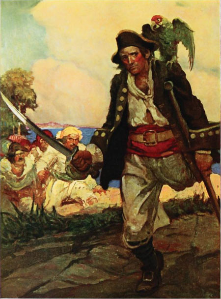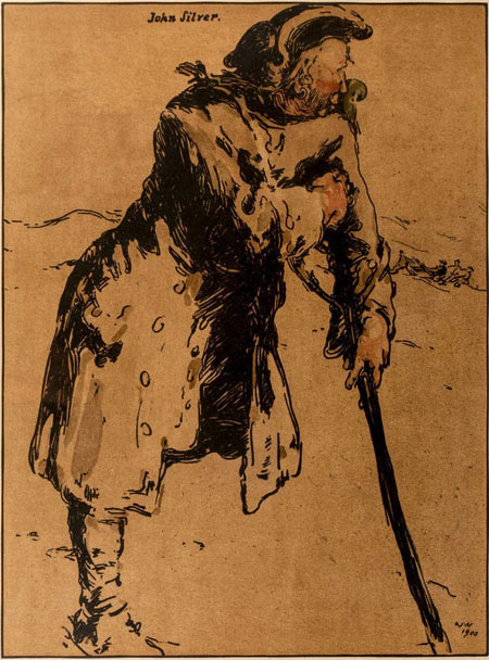 הרשומה הזאת לא תעסוק בכלל האיורים שנעשו לספר הפופולארי הזה, אלא רק באחד הגיבורים, מן הדמויות הידועות ביותר בספרי ההרפתקאות, ג'ון סילבר, או כפי שהוא נקרא באנגלית – Long John Silver.