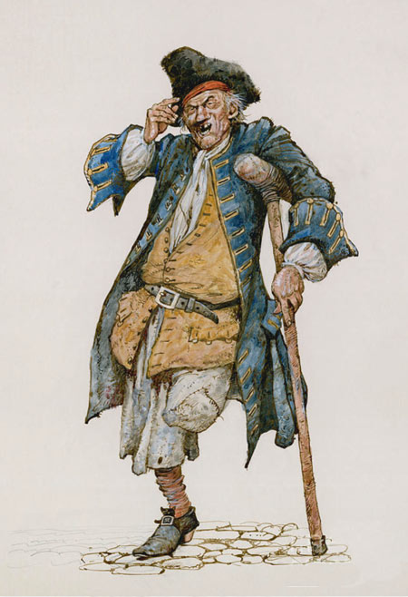 הערה בעניין הרגל: מאחר שאת התפקיד שיחקו שחקנים עם שתי רגליים, בקולנוע של אז היה אפשר "לכרות" לסילבר רק את החלק התחתון של הרגל. אבל באיור, כמו שכבר ראינו אצל פיק, היה אפשר כמובן לאייר גם סילבר כזה: