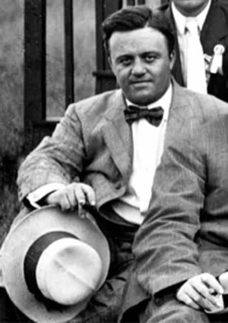 הנה הוא, באיור של מקס בירבוהם, מרצה לפני קהל אמריקאי: