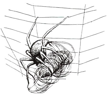 אפילו גדול המאיירים, ראלף סטדמן, כשהוא מצייר קורי עכביש עושה את הטעות הנפוצה: