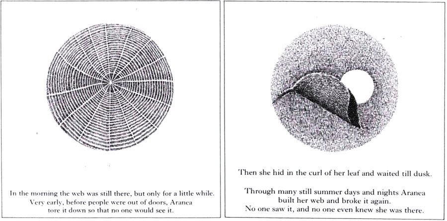 זהו סיפורה של ארנאה, עכבישה שמנסה לשרוד בעולם של בני אדם, מצליחה לשרוד משבר מזג אוויר וחוזרת לטוות קורים. הנה עוד כמה איורים ממנו: