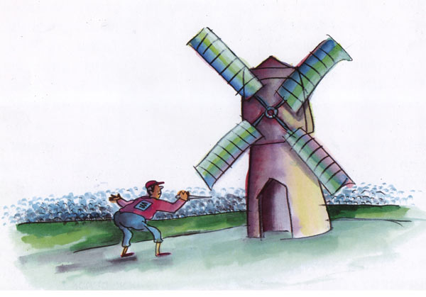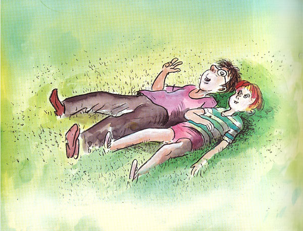 לפעמים אנחנו המאיירים עומדים בפני בעיה, כאשר כל מה שקורה בספר זה אבא ובן שוכבים או יושבים על הדשא והסיפור הוא בדיאלוג ביניהם.