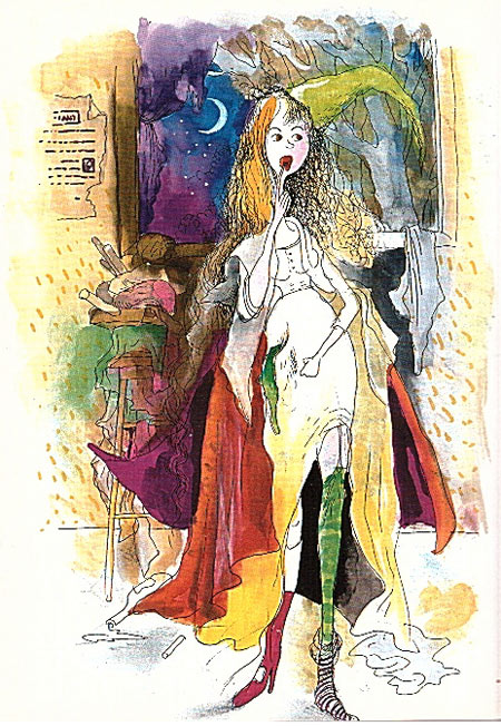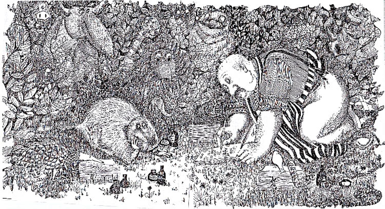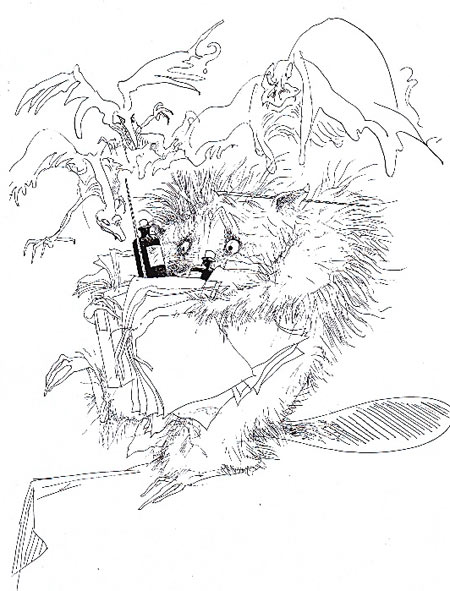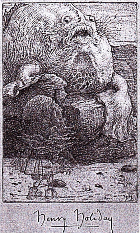 וכך אייר אותה מרווין פיק, שכפי שאתם רואים לא הוקסם כל כך מהחיות המוזרות: