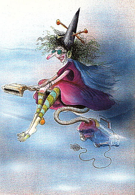 ולסיום, כדי לתת תוקף לאמירה שלצייר מכשפות זה הכי קל, אני מביא שבע מכשפות מתוך הספר קשה להיות מכשפה, שיצא לאור ב-1994 בהוצאת יוסף שרברק, ספר שערכה נדמה לי מירי ברוך. ואני כותב "נדמה לי" כי להפתעתי זה לא מצוין בספר.