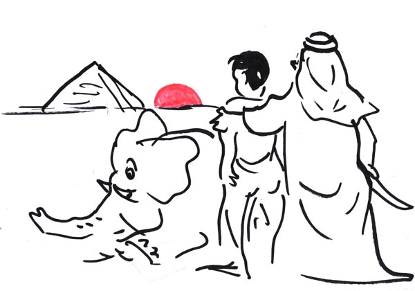 תשובה: אה… דה-וויאה יחזור אל המדבר, יפול על צווארו של השייח' ויישבע להיות לו האנק השעיר השני. תמונת הסיום תיראה כך: השייח' ובנו החדש ניצבים בפתח האוהל, השמש שוקעת מאחורי פירמידה, הפיל הנאמן של דה-וויאה שרוע לרגליו ונושא אליו מבט של מסירות אילמת.